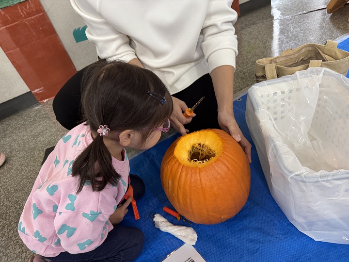 大人も子どもも夢中になってジャック・オ・ランタンを作りました。![]()
