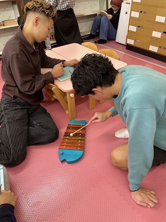 利用者のいない日に見学の機会をいただいて、備えてあるおもちゃを使って遊びました。
