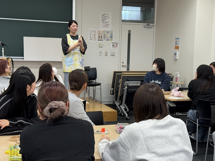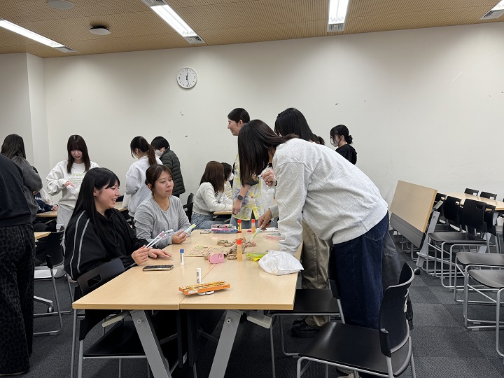 すでに、保育所実習1や幼稚園実習1を終えている学生ですので、スムーズな進行で楽しめただけでなく、学生同士で子どもの動きを想像しながら、いろいろな工夫について意見交換もしました。