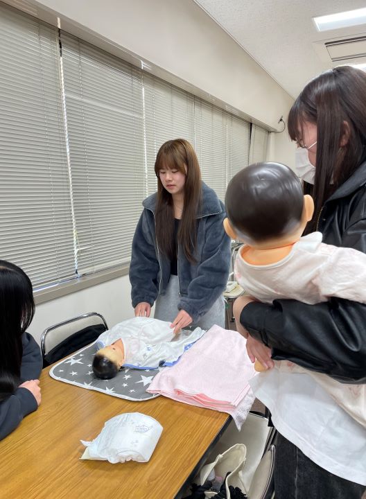 赤ちゃん人形を使って実習を行いました。