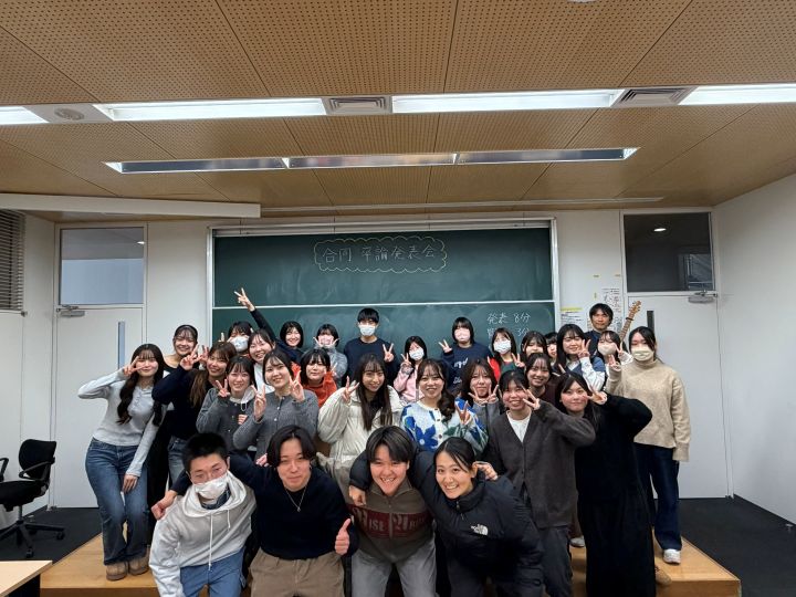 最後はゼミの仲間で集合写真。4年生の発表は、3年生たちは大きな刺激となったようです!
