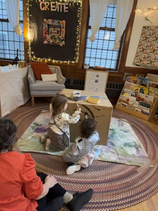 アメリカの園~2人ずつ段ボールに色塗り~