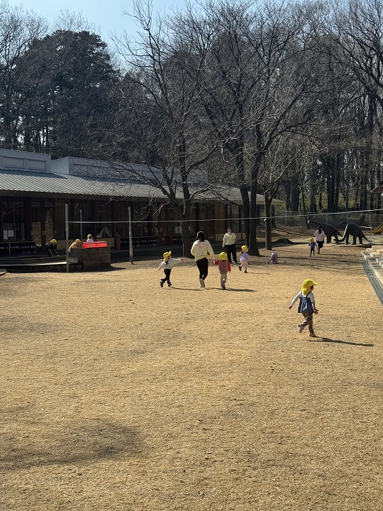 お遊戯や制作の様子や園庭の向こう側の森で遊ぶ様子を観察しました。