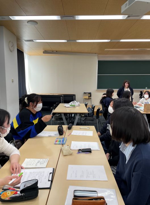 学生たちは体験談を話し合い、各保育所で保育方針や活動内容等が異なることを理解したようです。
