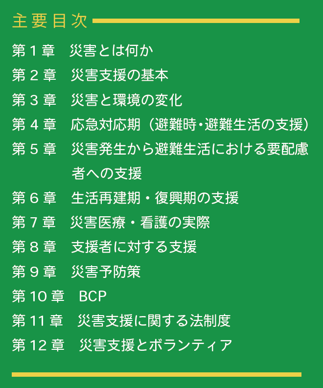 新井教授は学生とともに様々な被災地で支援活動を、また白神准教授は障害のある方々の防災活動を全国で行っています。これまでの実践や研究成果を踏まえて、イラストとともにわかりやすく災害時の福祉支援について解説しています。